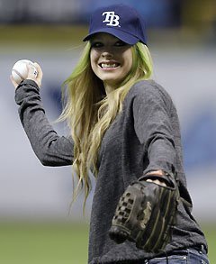Avril Lavigne was all smiles when she threw out the first pitch before last night's Tampa Bay Rays game.