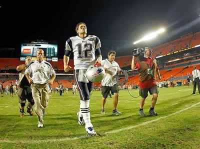 So what was the "emphatic message" that was sent last night? Well, for all the "team" this and "team" that New England players are famous for constantly spewing out, you don't think in the back of Brady's mind there's not a little "me" voice constantly hounding him? A voice that says things such as, "You're the greatest, now show them." And, "Don't forget, sixth round, pick #199." My guess would be last night it said, "Apparently, these people need to be reminded exactly who the best damn quarterback in the National Football League is."