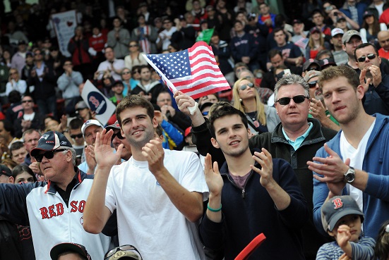 Rene Rancourt began his rendition of the Star-Spangled Banner, but was quickly silenced as the entire arena began to sing along. While Rancourt directed the crowd, fans waved American flags and signs that read "Boston Strong." Chants of "USA" echoed out as the puck was dropped. The Bruins would lose 3-2, but the moment wasn't over. Afterwards, both teams gathered at center ice and raised their sticks in salute to the fans, the first responders and the entire city.